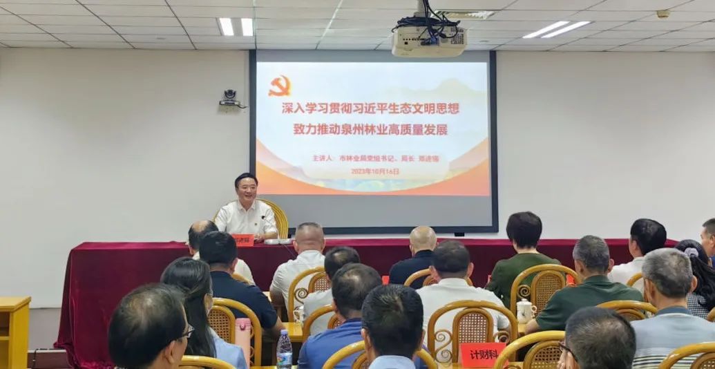党组书记、局长郑进锡以《深入学习贯彻习近平生态文明思想 致力推动泉州林业高质量发展》为题讲授主题教育专题党课。局机关处级领导、机关全体党员干部、直属单位主要负责人参加。