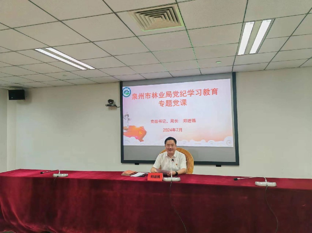 党组书记、局长郑进锡结合案例剖析,以《严明纪律规矩 涵养清风正气 为推动泉州林业高质量发展提供坚强纪律保障》为题,为全体党员干部讲授专题党课。