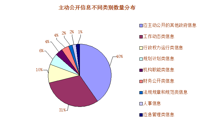在主动公开的政府信息中,应主动公开的其他政府信息21条,占40.4%;六合彩开奖直播动态 类信息16条,占30.8%;行政权力运行类信息5条,占9.6%;规划计划类信息3条,占5.8%;机构职能类信息2条,占3.8%;财务公开类信息2条,占3.8%;法规规章和规范类信息1条,占1.9%;人事信息类信息1条,占1.9%;应急管理类信息1条,占1.9%。