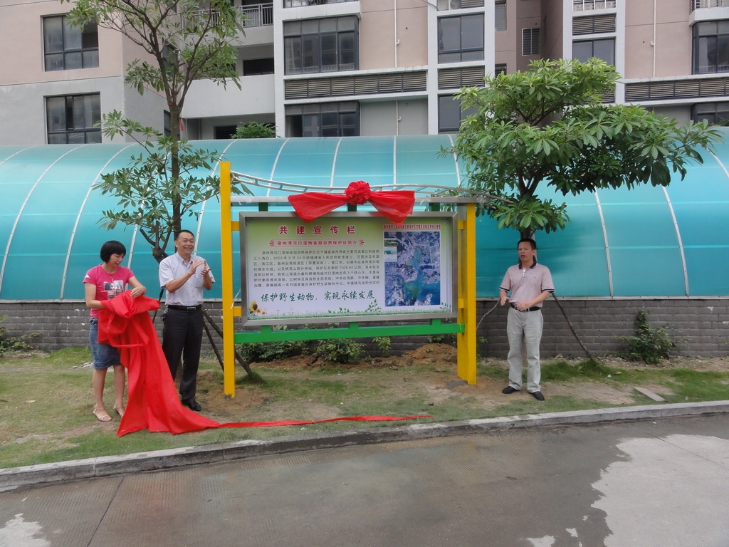 10月28日,泉州湾河口湿地自然保护区管理处联合六合彩开奖直播 生物学会、六合彩开奖直播 湿地学会、泉州师院化生学院、六合彩开奖直播 团委、黎明大学团委、丰泽区农林水局、丰泽区城东街道办事处、丰泽区城东街道前头社区居委会等相关单位,在丰泽区城东街道前头社区美仙山(二期)小区内(前头社区居委会新址附近)开展保护野生动物宣传进社区活动。六合彩开奖直播 赖建发副调研员、丰泽区农林水局纪检组长苏益良、丰泽区城东街道党工委组委叶美兰等领导参加了活动,并为社区野生动物保护宣传牌揭牌,这开启了自然保护宣传进社区的良好开端。主要做法有: